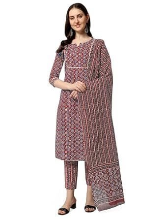 - Color: : Top- Maroon, Cream, Dark Blue; Bottom- Maroon, Cream, Dark Blue; Dupatta- Maroon, Cream, Dark Blue|| Fabric: : Top- Cotton; Bottom- Cotton; Dupatta- Cotton
