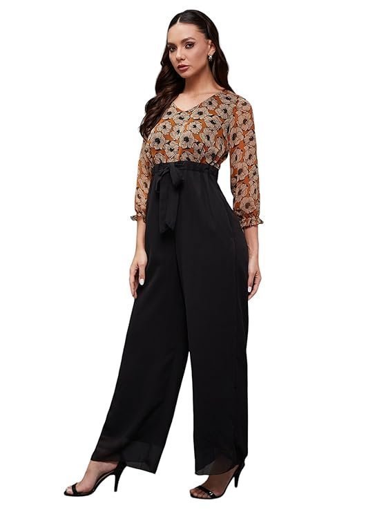 - Style: Wide Leg | Pattern: Floral | Fit: Relaxed Fit | Length: Regular | Closure: Zip | Neck: V-Neck | Sleeves: Bishop Sleeves | Pockets: Yes, 2 Side Pockets
