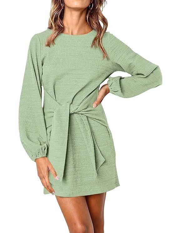- Features:Womens fall fashion 2025,lantern long sleeve dress for women,above knee length mini dress,crewneck winter dress,tie waist dress,lightweight short dress,breathable,solid color,casual dress for work